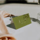 Klassische und elegante Hochzeitsplatzkarte, entworfen für eine saubere und elegante Tischdekoration im Stil des alten Geldes. Diese gefaltete Eskortkarte zeigt einen handgeschriebenen Hochzeitsnamen in Verbindung mit zeitgenössischer Typografie. Die olivgrüne Hochzeitsdekoration verleiht Ihrer Hochzeit eine frische, stilvolle Note. Perfekt als individuelle Gastnamekarte für eine schicke und einfache Hochzeitsfeier. Verwenden Sie diese elegante gefaltete Platzkarte, um Ihre moderne Rezeptionstischdekoration zu veredeln. Eine anspruchsvolle zeitgenössische Hochzeitstischkarte, die jedes minimalistische Hochzeitsthema ergänzt.