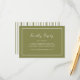Trotz der Trends olivgrüne Hochzeits-RSVP-Karte für eine moderne elegante Hochzeitsfeier. Dieser schicke minimalistische Einsatz spiegelt ruhigen Luxus und moderne botanische Ästhetik wider, perfekt für die stilbewusste moderne Braut, die eine Hochzeit im Weinberg, Garten oder an der Küste plant. Kombinieren Sie mit olivfarbenen Umschlagauskleidungen, goldenen Details und gestreifter Hochzeitspapeterie für eine polierte redaktionelle Hochzeitssuite.