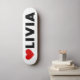 Der Name Olivia mit dem Buchstaben oder ersetzt durch eine rote Liebe. Die Farben können geändert werden.