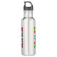 Aquamarine, rosa, lila, gelbe, blaue, rote und grüne Wasserflasche mit dem Namen Olivia, Blume, Regenbogen und Blätter.