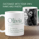 Simple personalized name definition text mug for the name Olivia meaning in a dictionary style design with three point meaning 1. An Olivia 2. Beacon of peace and hope 3. Giver of strength and friendship. Other name meanings and styles available or personalize this with your own name and what your name means to you, then add your own special photo to make this mug truly for Olivia! Designed by www.mylittleeden.com and namesense on Zazzle.