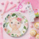 Olivia Pigsley Pig 9" Dessertplatte - Babydusche Pappteller