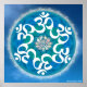 Schneeflocke, die mit dem Om-Symbol erstellt wurde. Omer Rand mit typischem Lotus-Symbol in der Mitte.