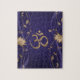 OM-Symbol-goldene Lotos-Blumen auf Lila Puzzle