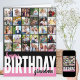 Erstellen Sie Ihre eigene große Geburtstagskarte. Die Fotovorlage ist für Sie bereit, 31 Ihrer Lieblingsfotos hinzuzufügen, von denen 30 in quadratischem / instagram Format in einer einfachen Rasterstil-Foto-Collage dargestellt werden und die Hauptsache ist in einem Frame-Portrait-Format auf der Innenseite. Die Vorderseite der Geburtstagskarte ist mit moderner überdimensionaler Typografie und Pinselskripten versehen. Derzeit liest es "Happy Geburtday Oma" mit Farbblockstyling in Rosa, Schwarz und Weiß. Sie können die personalisierte Formulierung auf der Vorderseite bearbeiten und auch den Gruß im Inneren anpassen.