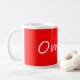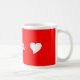 Diese Tasse für Ihre deutsche oder niederländische Großmutter zeichnet sich durch einen hellroten Hintergrund mit "Oma" in weißer Schrift aus. Daneben ist ein passendes weißes Herz.