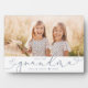 Erwecken Sie Wärme und Zärtlichkeit mit dieser personalisierten Foto-Plakette, eine Feier der einzigartigen Verbindung zwischen Oma und Enkel. Dieses moderne Meisterwerk besticht durch das von einem wirbelnden Herz umgeschlagene, in eleganter Schrift gefertigte Foto. Personalisiert mit Ihrem Kindernamen wird es zu einem zeitlosen Schatz, jede Zuhause zu schmücken.
