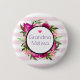 Eine personalisierte Oma-Taste mit Blumenstrauß aus hellrosa Rose und dunkelrosa Pappeln mit vielen üppig grünen Blätter. Ein überlagerter Rahmen, der den personalisierten Text hineinlegt. Der Hintergrund ist ein weiches pastellrosa gestreiftes Muster.