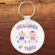 Niedliche Schlüsselkette mit "Oma of Twins" in rosa und blauen Texten und niedlichem Jungen und Mädchen in blau und rosa Kleidung.