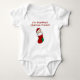 Adorable Baby's erste Weihnachtskröten-Taschen, T - Shirt und mehr für Oma's Junge oder Mädchen mit einem Kind mit einem roten Strumpf-Kappe in einem Strumpf Weihnachten und Text, der lautet "Ich bin Oma's Weihnachtsgeschenk!".