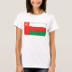 Die Vorderseite dieses T - Shirt zeigt mutig die Omani-Fahne mit ihrem unverwechselbaren weißen Motiv in roter Farbe neben weißen, roten und grünen Horizonten. Hinter dem Bild befindet sich eine attraktive Karte von Oman.