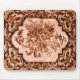 Mauspad mit einem gemütlichen Oma-Stickereimuster in Form eines kleinen Teppichs in warmen Kaffee- und Schokoladentönen.