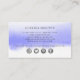 Ombre Lila Watercolor Minimalistisch Social Media Business Card. Dieses Design zeichnet sich durch ein abstraktes Aquarelldesign mit Social Media Icons auf der Rückseite aus. Perfekt für ein weibliches Business-Look für Haarstylisten, Makeup Künstler, Kosmetologe und mehr!