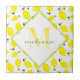 Die Inspiration für dieses lustige Design ist ein Aquarelllemonenmuster. Ihr Name ist in Grün und das ombre Monogramm ist in passendem Zitronengelb. Sie sind Set in weißer, rautenförmiger Form, doppelt umrahmt in passenden Gelb- und Grüntönen, und Set auf einem schönen Zitronenhintergrund.