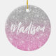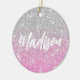 Ombre Pink Silver Glitzer Calligraphy Name Keramik Ornament