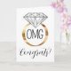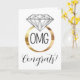 Diese Grußkarte sagt OMG Glückwunschs, vorne mit einer goldbanded weißen Diamant Verlobung Ring Grafik und eine herzliche, anpassbare Nachricht auf der Innenseite.