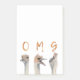 Dies ist ein Aquarellbild von Straußen mit sich verändernden Emotionen von der Ruhe zu einer Kernschmelze. Auf jedem Strauß sind Buchstaben, die "OMG" in der Goldfolie der Imitate enthalten.