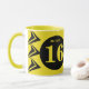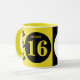 OMG, du bist 16 Kaffee-Tasse. Gelb und schwarz, mit Pfeilen, Kreisen, Name und monogramm Geschenkidee zum 16. Geburtstag.