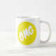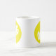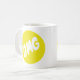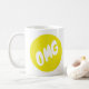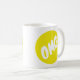 Eine Tasse, die OMG in einem gelben Kreis hat.