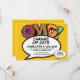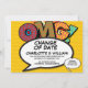 Personalisieren Sie mit Ihren Namen und Details, um die Änderung des Datums Ihrer besonderen Veranstaltung anzukündigen. Comic Buch Pop Kunst themed modern, Spaß Retro-Design, perfekt für Hochzeiten, Brautpartys, Babyduschen, Taufen, Verlobungen, Jubiläumsfeiern, Abschlüsse, Geburtstagsparty und andere besondere Veranstaltungen das ganze Jahr über! Ein cooles, trendiges und unterhaltsames Design, das den wackeligen Zap Pow in den Tag legt. Entworfen von ComicBookPop© unter www.zazzle.com/comicbookpop*