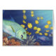 Ein omilu (Bluefin trevally) erhält besondere Aufmerksamkeit von einem saubereren Wrasse in dieser unterseeischen Szene. Andere Fische: milletseed Butterflyfish, Threadfin Butterflyfish, Waschbär Butterflyfish und Papageienfisch.