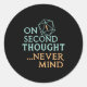 On Second Thought Never Mind, Funny Gift For Men, Runder Aufkleber