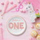 Rosy Pink ONE Balloon Party Platte, koordiniert mit passenden Einladungen auch im Shop!