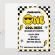 Celebrate your little one's big milestone with this groovy 1st birthday invitation! Featuring a cheerful yellow happy face against a clean white background, this design perfectly balances a modern vibe with a retro twist. The bold black and white checkered background adds a playful yet stylish touch, giving off a cool, 70s-inspired feel.