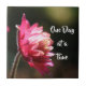Pretty red flower smiling in the sunshine with the inspirational saying One day at a time. Flower photography by Susan. For more floral, animal, and nature posters and prints, please visit my poster gallery SmilinEyes_Posters. This image is available on many cards and products in my main store Smilin' Eyes Treasures. Visit my Profile page to find links to all of my stores.