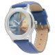 Kinderuhr aus Edelstahl mit blauem Lederarmband