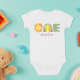 Was für ein Spaß, du bist ONE! Feiern Sie Ihren ersten Geburtstag mit einem maßgeschneiderten Bodysuit mit einer Aquarellsonne und Regenbogen, in dem die Nummer "ONE" und der Name Ihres Kindes darunter angegeben sind. Personalisieren Sie sich einfach mit dem Namen Ihres Babys! Farben sind geschlechtsneutral und machen sie für alle Kinder großartig. Schriftart-Farben können auch innerhalb des Editors geändert werden.