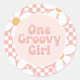 One Groovy Girl Pink Daisy Schachbrett Runder Aufkleber