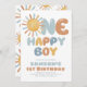 One Happy Boy! A bright and colorful sun themed boys 1st birthday invitation in blue, orange and yellow. Available in other colors.