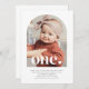 Eine Einladung zum ersten Geburtstag mit einem eigenen Foto in Bogenform und den Worten "eins" und "ein kleines Herz über der Spitze". Bitte beachten Sie, dass genau dieser Umschlag und das Siegel (im ersten Foto) nur ein Beispiel sind und nicht mit den Einladungen mitgeliefert werden. Wählen Sie Ihre Umschlagauswahl aus den Optionen von Zazzle aus:)