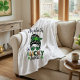 Das ist eine witzige Fleecedecke zum St. Patrick's Day mit einem Design, in dem eine Frau mit ihren Haaren in einem Brötchen mit Sonnenbrille und den Worten "One Lucky Lassie" dargestellt wird. Der Name auf der Tote-Tasche ist individuell einstellbar und würde ein personalisiertes Geschenk machen.