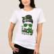 Ein Lucky Mama Irish St Patrick's Day T - Shirt zeigt den Text "One Lucky Mama" in lustiger und moderner grün-schwarz Glitzer-Schrift mit einer Dame, die eine Sonnenbrille und Kleber trägt. Von Evco Holidays entworfen www.zazzle.com/store/evcoholidays