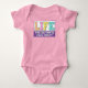 This baby one-piece features a very direct pro-life message, this one in pastels.