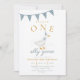 ONE Silly Goose Blue Gingham Boy First Birthday Einladung
