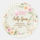 One Silly Goose Gingham Pink Flora Birthday Party Runder Aufkleber