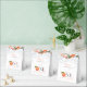 Diese charmanten Partytüten zum ersten Geburtstag zeigen Pfirsiche und Blüten in Aquarell-Optik, kombiniert mit eleganter Schreibschrift-Typografie. Design: Thisisnotme©