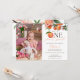 This charming first birthday party photo invitation features a peaches and blossom watercolor, along with elegant script typography. Designed by Thisisnotme©