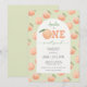 One Sweet Peach First Birthday Party Invitation. Celebrate your little one's very first birthday with this adorable "one sweet peach" themed birthday invitation. The cute design features a charming watercolor illustration of ripe peaches scattered across a light green background with a white polka dot pattern. This pun filled invitation is perfect for a spring or summer birthday party, bringing a fresh and fruity vibe to your celebration. The cute peach one graphic mixed with the modern script typography is whimsical and chic. Easily customizable with your party details, it's sure to set the tone for a sweet and memorable first birthday party. Make any party have the southern charm of Georgia or South Carolina with this fun invite. Make sure your little girl has the sweetest 1st birthday party.