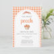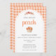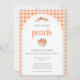 Celebrate your little one’s first birthday with this charming "One Sweet Peach" party invitation! Featuring soft watercolor peaches, delicate floral accents, and a peach-colored gingham background, this design is the perfect blend of sweet and playful. Personalize with your child’s name, party date, time, and location to create a keepsake-worthy invitation your guests will love. Ideal for a peach-themed summer birthday or garden celebration.