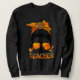 One Thankful Teacher Leopard Messy Bun Thanksgivin Sweatshirt