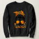 One Thankful Teacher Leopard Messy Bun Thanksgivin Sweatshirt