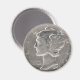 Dieser Quecksilberdim aus dem Jahr 1945 ist seit langem im Umlauf. Mit dieser Münze können Sie eine Tasse Kaffee kaufen, eine Rundfahrt mit der Fähre nach Staten Island unternehmen oder einen Hamburger bestellen! Dieses Vintage Design macht einen einzigartigen Magneten für Ihren Kühlschrank oder für jeden anderen Gebrauch.