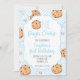 Ein harter Keks! Milch und Cookies Geburtstagsparty laden in Blau mit Schokoladenkeksen und Milchflaschen und blauen Strohhalmen ein. Einladung zum ersten Geburtstag.