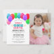 Farbenfrohe Ballons und rosa Akzente zeigen Ihr Foto auf dieser Einladung, perfekt für eine ONEderful First Birthday Party. Jedes Feld ist vollständig anpassbar, um genau zu sagen, was Sie gewollt haben!