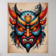 Spektakuläre oni Maske platzt mit lebhaften Farben, eine ausdrucksvolle Verschmelzung von Stärke und Verzauberung in jedem Pinselstrich.