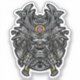 Dieses Bild zeigt eine stilisierte Samurai-Maske, inspiriert von den oni, einem japanischen Dämon oder Oger. Die Maske ist vorwiegend metallisch, mit komplizierten Details und einem bedrohlichen Ausdruck. Die Augen sind verengt, und der Mund ist in einer wilden Schnecke offen. Auf der Stirn wird eine Kirschblüte sichtbar, die eine Touch von Kontrast und Symbolik hinzufügt. Die Maske ist in einem runden Design gerahmt und unterstreicht damit ihre starke Präsenz.